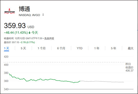 受此影响,苹果涨0.1%。博通的股价收盘下跌11.4%,但因为毛利率前景较弱!